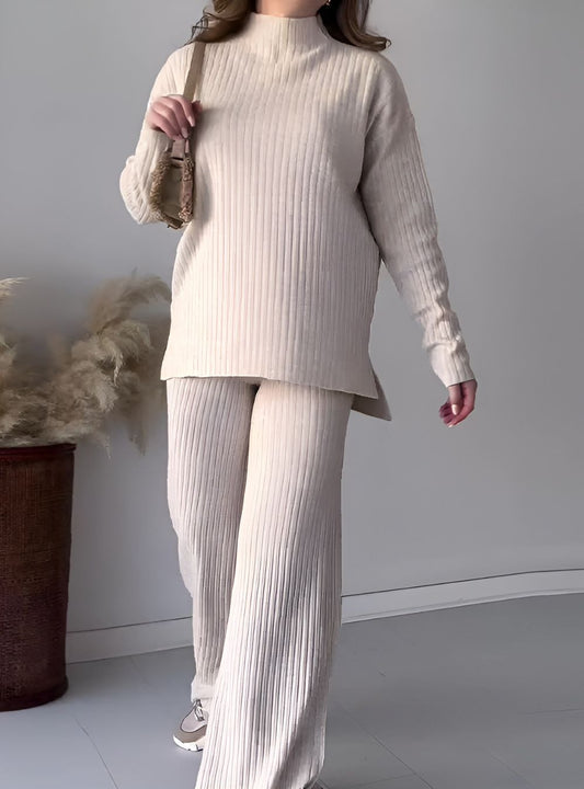 Long Ribbed Co-Ord Set with High Slit