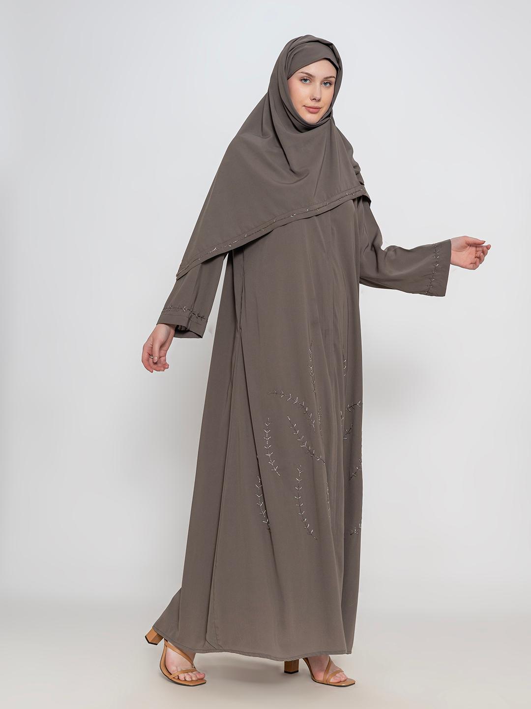 Intrinsic. Our Intrinsic abaya with stone work is now available in Beige and Ash Colors. Shop now and elevate your modest style!